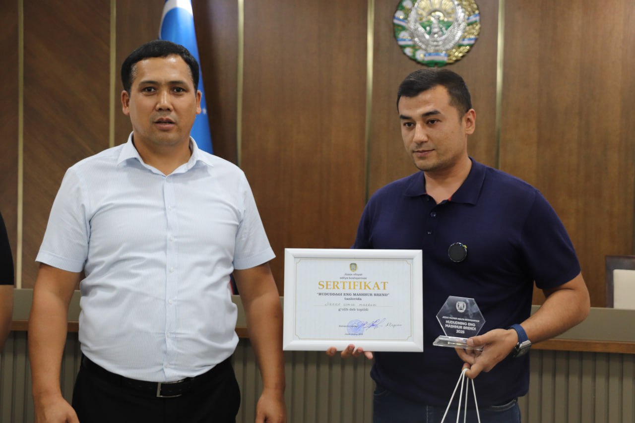 Jizzax viloyat adliya boshqarmasi tashabbusi bilan Jizzax viloyatida faoliyat yurituvchi eng mashhur tadbirkorlik subyektlari o‘rtasida “Hududning eng mashhur brendi – 2025” tanlovi o‘tkazildi.