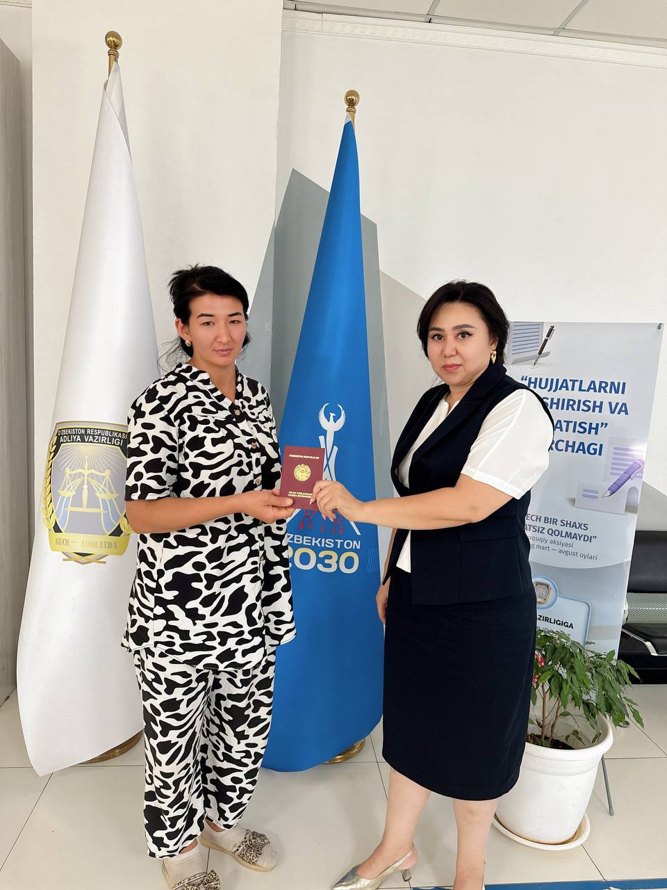 Zomin tuman adliya bo'limi FHDY bo'limi tomonidan "Hech bir shaxs hujjatsiz qolmaydi" huquqiy aksiyasi doirasida 45 yoshli fuqaroga ma'lum sabablarga ko'ra olinmay qolgan tug'ilganlik guvohnomasi rasmiylashtirilib berildi.